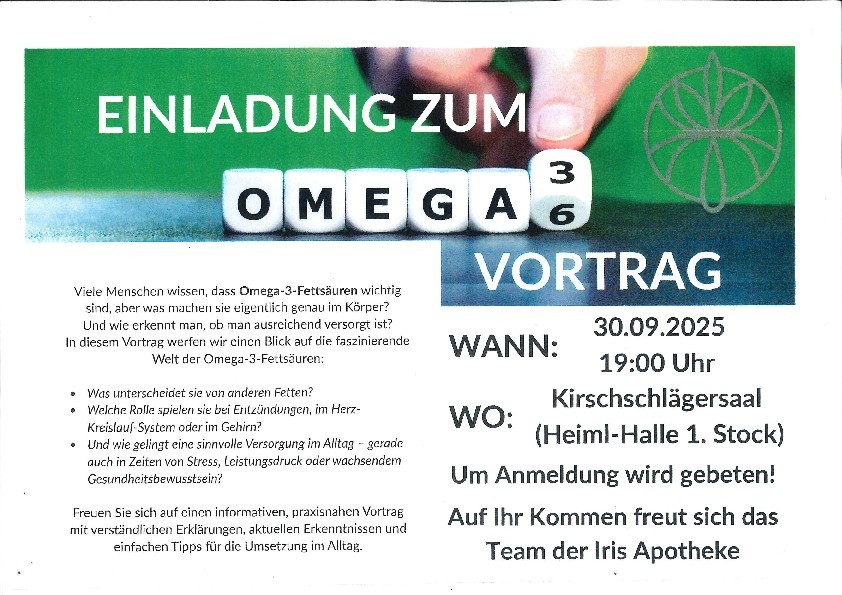 OMEGA-3 Vortrag | Iris Apotheke Kronstorf