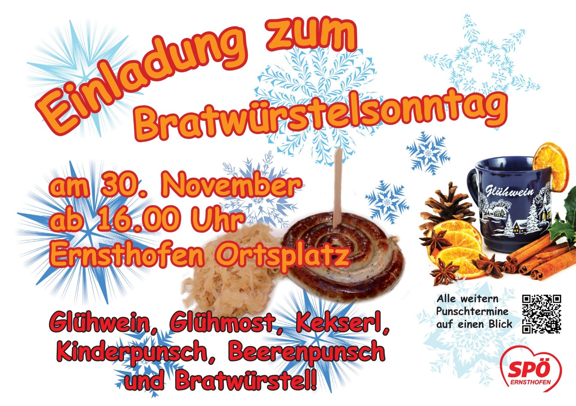 Bratwürstlsonntag: 30. November 2025 | ab 16:00 Uhr