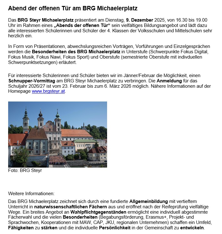 Abend der offenen Tür: BRG Michaelerplatz