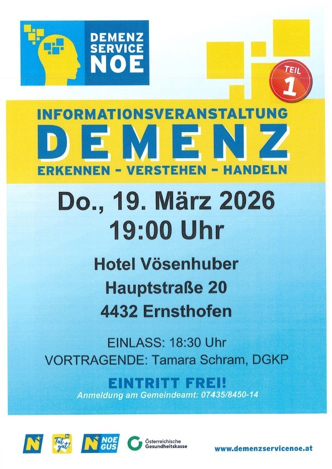 Für die Vorträge bitten wir um Anmeldung am Gemeindeamt Ernsthofen: 07435 / 8450-14