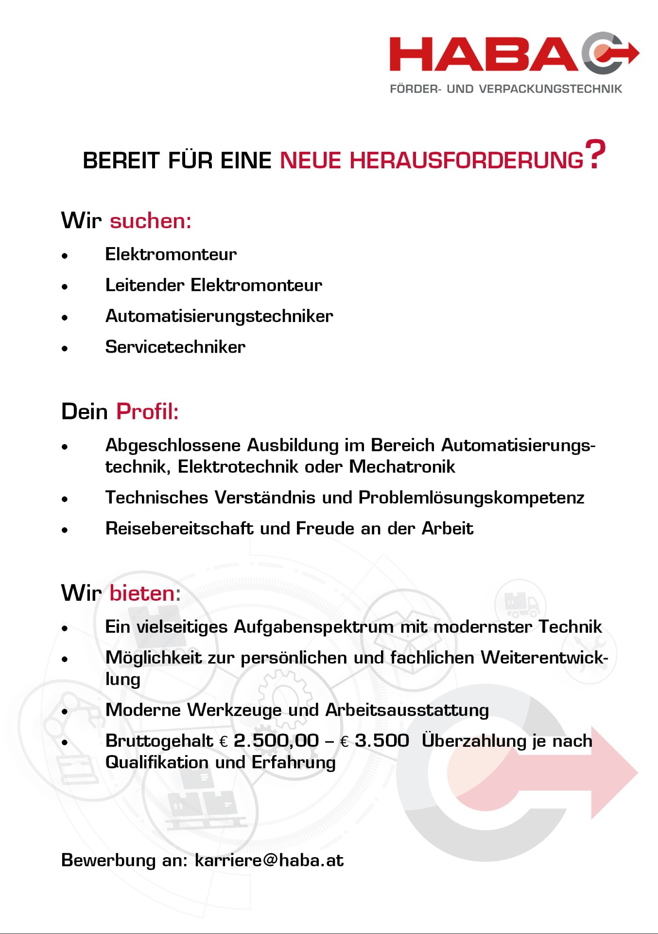 HABA Förder- und Verpackungstechnik sucht motivierten Techniker